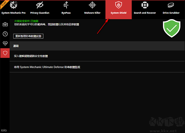 5、System Shield提供系統(tǒng)防御功能,可以查看當(dāng)前系統(tǒng)是否已經(jīng)啟動殺毒軟件;