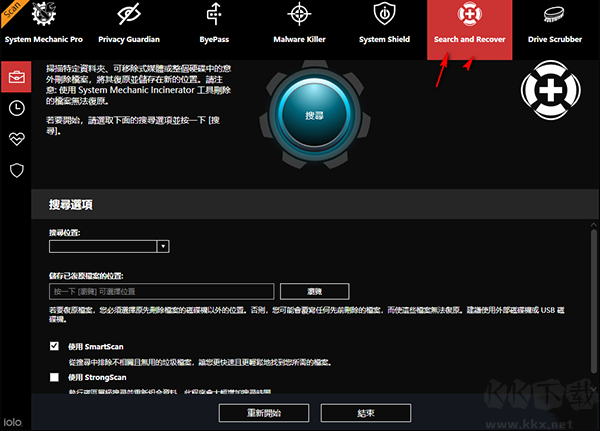 4、Search and Recover是搜索和恢復(fù)功能,可以分析刪除的數(shù)據(jù),將其還原到分區(qū);