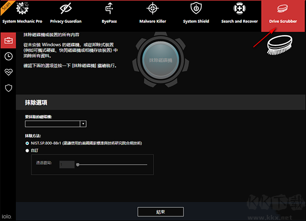 3、頂部顯示很多工具,Drive Scrubber是設(shè)備清理功能,掃描磁盤的數(shù)據(jù)清理全部資料;