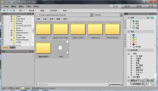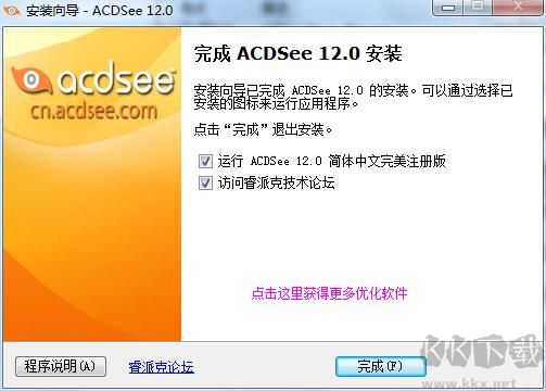 ACDSee 12是ACCESS眾多版本中比較好用的版本,功能齊全而不臃腫,有了它可以幾乎一網(wǎng)打飛所有圖片文件格式,ACDSee擁有最快的看圖速度和強(qiáng)大的圖片管理能力,是設(shè)計(jì)、攝影人員最佳圖像管理軟件。KK下載站分享是直裝破解版,直接安裝即可使用!