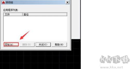 6、點(diǎn)擊啟動(dòng)組選項(xiàng),彈出啟動(dòng)組對(duì)話框,在該對(duì)話框內(nèi)找到添加選項(xiàng)