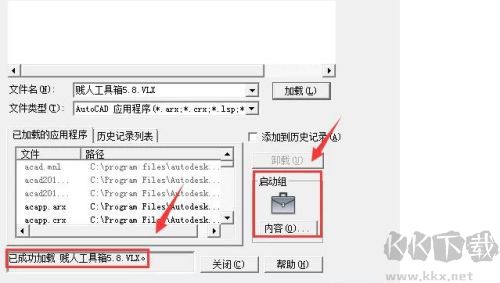 5、在該對(duì)話框內(nèi)點(diǎn)擊加載,可以看到我們就加載完成了,再找到啟動(dòng)組選項(xiàng)