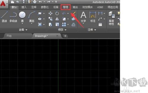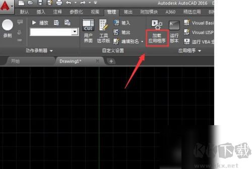 1、在桌面上找到CAD的快捷圖標(biāo),雙擊打開CAD這款軟件,進(jìn)入CAD的操作界面,在該界面內(nèi)找到管理菜單,點(diǎn)擊管理菜單在其內(nèi)找到加載應(yīng)用程序選項(xiàng)