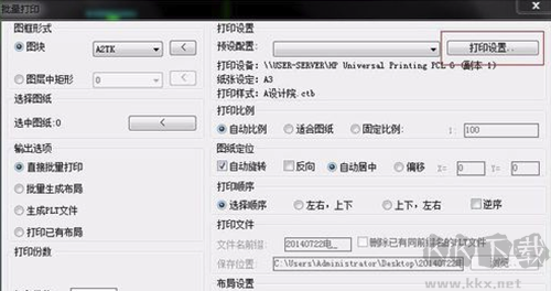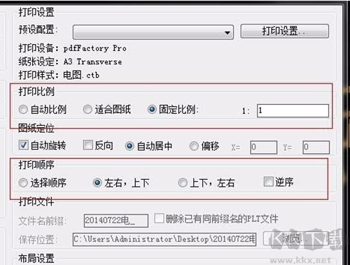 6、設(shè)置比例、打印順序,如果圖框選擇了偏移了還能設(shè)置偏移值;