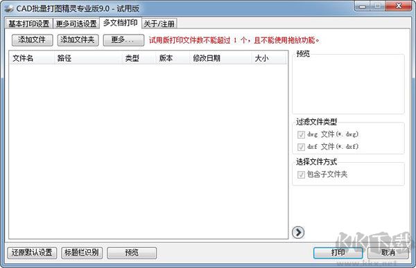 多文檔批量打印:依次打開多個CAD圖形文件,識別指定空間內(nèi)的圖框并打印。