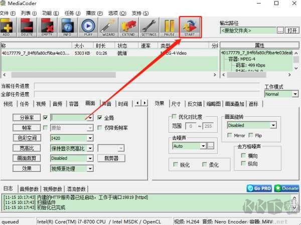 5、點(diǎn)擊右上角的START按鈕開(kāi)始處理視頻文件