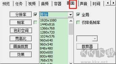 4、點(diǎn)擊下方畫(huà)面選項(xiàng),并根據(jù)需求設(shè)置分辨率