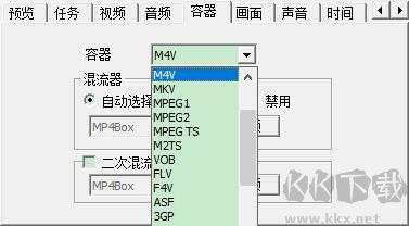 3、點(diǎn)擊下方容器選項(xiàng),選擇你想輸出的文件格式