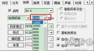 2、選擇好文件后點(diǎn)擊下方視頻選項(xiàng),視頻碼率選擇1200