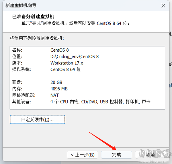 10、點(diǎn)擊完成創(chuàng)建虛擬機(jī)
