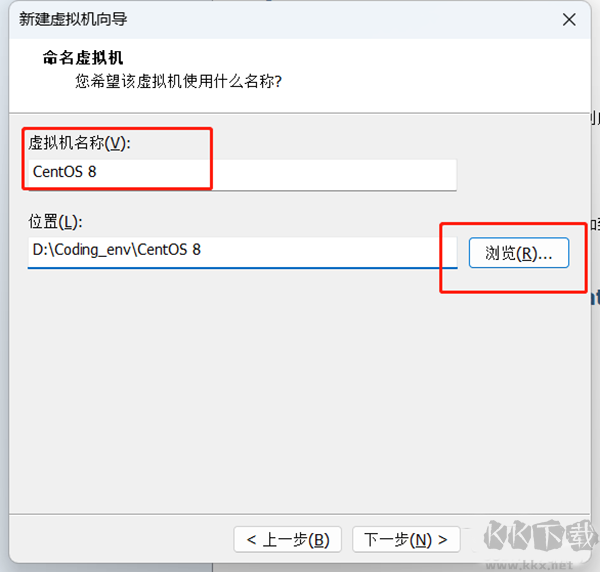 4、設(shè)置虛擬機(jī)名稱和安裝位置