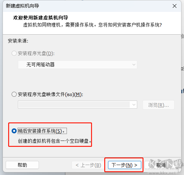 2、選擇稍后安裝操作系統(tǒng),點(diǎn)擊下—步