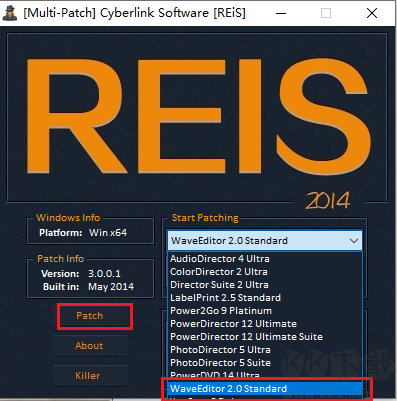 5、然后雙擊運行激活文件,彈出下圖情況,選擇“WaveEditor 2.0 Standard”,在點擊一下“patch”;