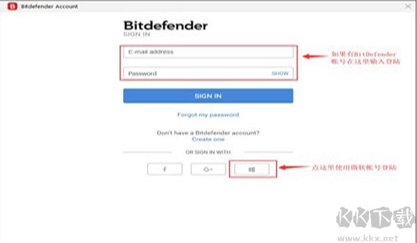 方法二: 以BitDefender帳號登陸,如果沒有帳號,聯(lián)系客服幫你注冊一個,客服QQ:1213350329