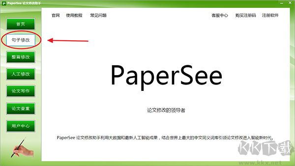 1、打開(kāi)軟件,點(diǎn)擊軟件左側(cè)的“句子修改”按鈕。