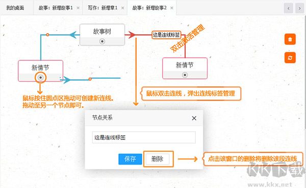 - 編輯連線標簽:鼠標雙擊該連線,即可彈出編輯標簽窗口,輸入文字按保存即可。同時該編輯也是刪除連線的入口。