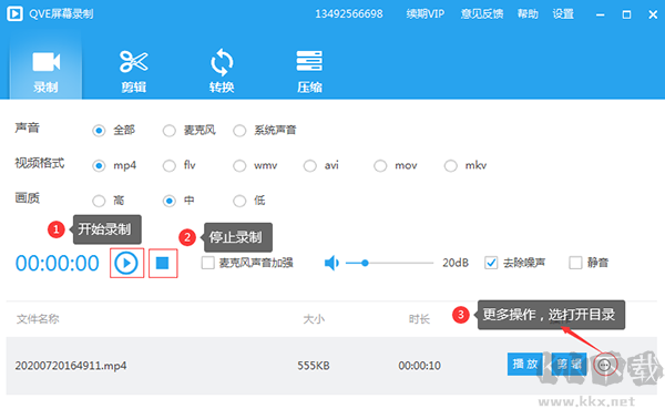 設(shè)置好Qve屏幕錄制軟件的參數(shù)后,點(diǎn)擊【開始錄制】image.png按鈕,也或按快捷鍵Alt+F8,開始錄像,錄像結(jié)束后,點(diǎn)擊【停止錄制】image.png按鈕,或Alt+F12,列表會(huì)顯示錄像的文件大小和時(shí)長,點(diǎn)擊更多操作image.png,選擇打開目錄。