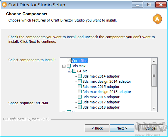 2、選擇需要安裝的組件,根據(jù)你需要使用的組件進行選擇,然后點擊Next進行下一步
