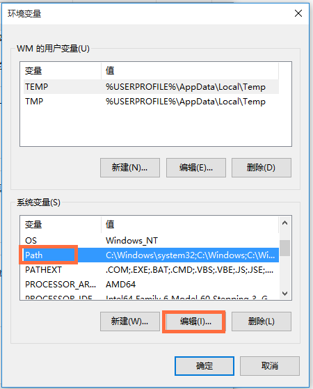 在系統(tǒng)變量中找到Path變量,進行編輯,彈出對話框,變量名為Path,在變量值中添加輸入【;%JAVA_HOME%\bin;%JAVA_HOME%\jre\bin;】,