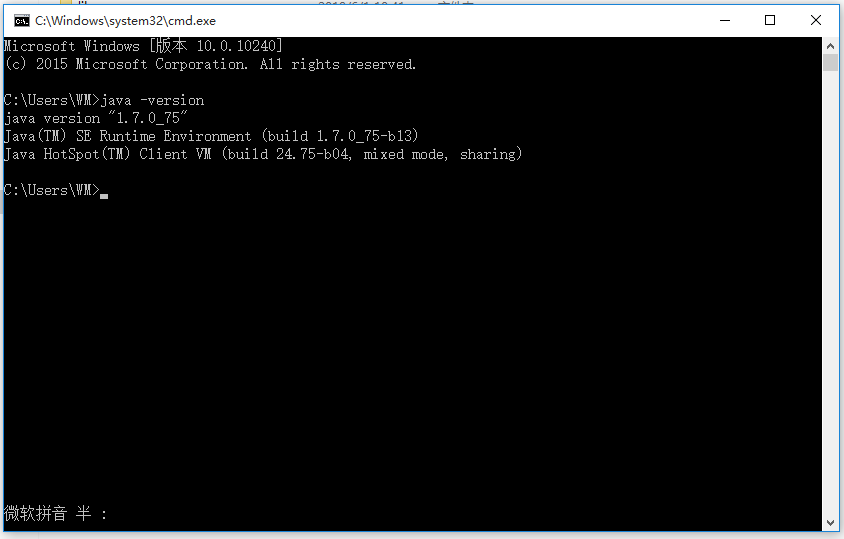 輸入java -version(java 和 -version之間有空格),出現(xiàn)如圖信息,說明配置成功了。
