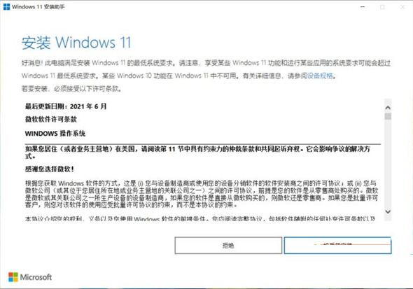 2、確認(rèn)兼容性沒有問題后就可以正式的安裝Windows 11 啦,點(diǎn)擊“接受并安裝”按鈕。
