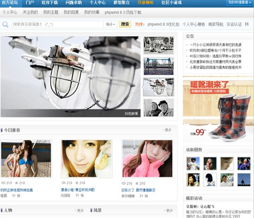在phpwind9.0中,版塊分類頁面是一個(gè)獨(dú)立的頁面,結(jié)合門戶的diy功能、版塊的特殊風(fēng)格和版塊的個(gè)性化域名功能,構(gòu)建社區(qū)頻道。