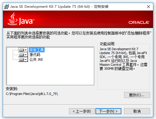 提示:Java SE Development Kit 7 Update 75 (64-bit),包括JavaFX SDK,一個(gè)專用JRE,一個(gè)專用JavaFX運(yùn)行時(shí)以及Java Mission Control工具套件。這需要300MB的硬盤空間。