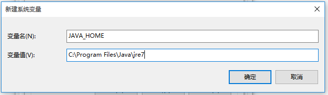 如圖,點(diǎn)擊【新建】,彈出對(duì)話框,變量名為【JAVA_HOME】,變量值為是指安裝JDK的路徑,kkx將其安裝在C:\Program Files\Java\jre7,點(diǎn)擊確定;