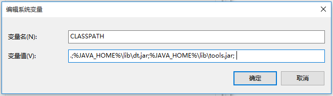 找到CLASSPATH,沒(méi)有就要新建,變量名為CLASSPATH,變量值為【.;%JAVA_HOME%\lib\dt.jar;%JAVA_HOME%\lib\tools.jar; 】,點(diǎn)擊確定,