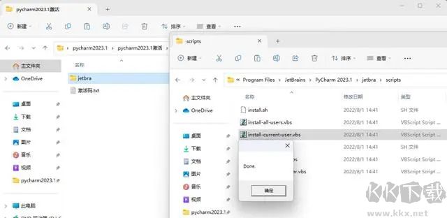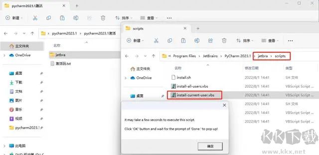 11、進入復制后的jetbra文件里的scripts文件夾,里面有個install-current-user.vbs,雙擊運行它,點擊確定按鈕