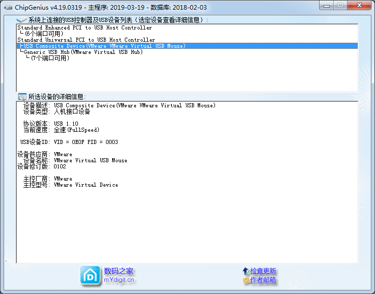 2.芯片精靈能自動(dòng)列出所有接口上的usb設(shè)備,點(diǎn)擊對(duì)應(yīng)的設(shè)備就能了解到相應(yīng)的信息