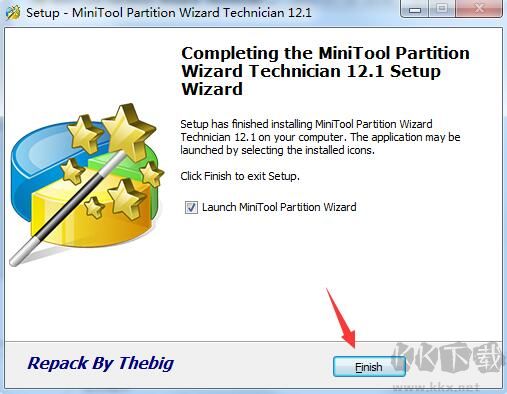 10、安裝完成,點(diǎn)擊“Finish”退出安裝向?qū)Ъ纯桑涂梢赃M(jìn)入軟件開始進(jìn)行磁盤分區(qū)了。
