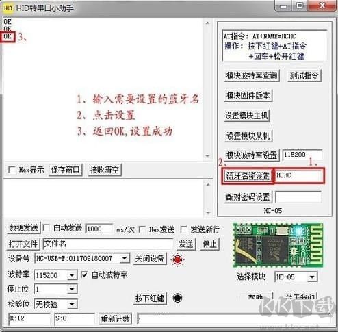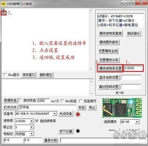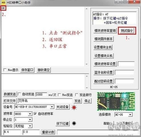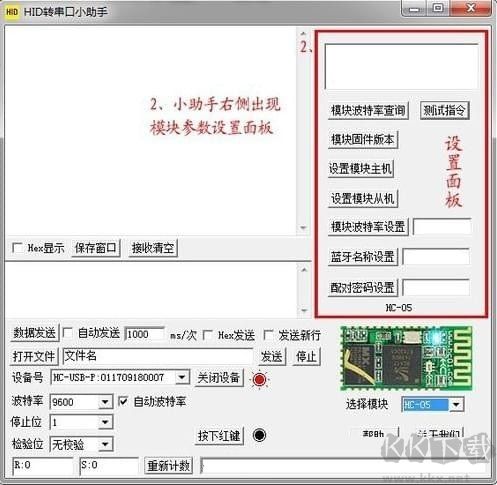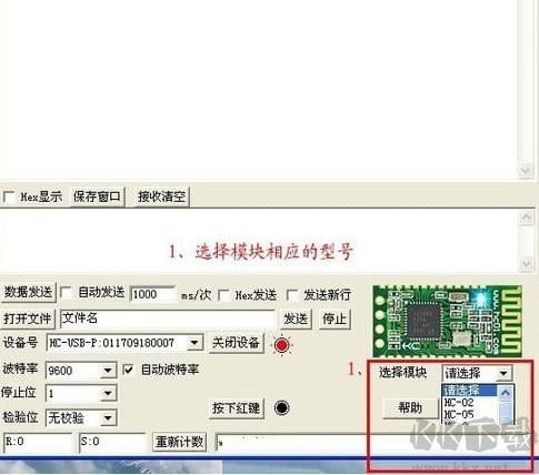 打開HID口小助手,選擇模塊型號(hào)HC-05