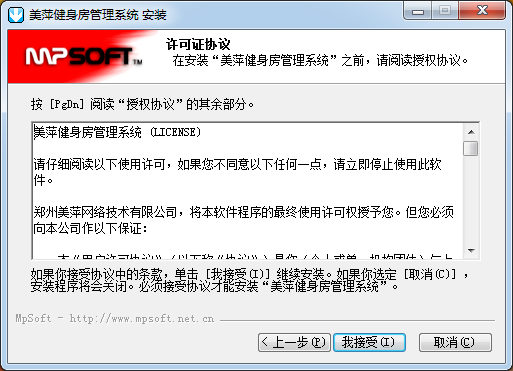 在安裝“美萍健身房管理系統(tǒng)”之前,請(qǐng)閱讀授權(quán)協(xié)議。