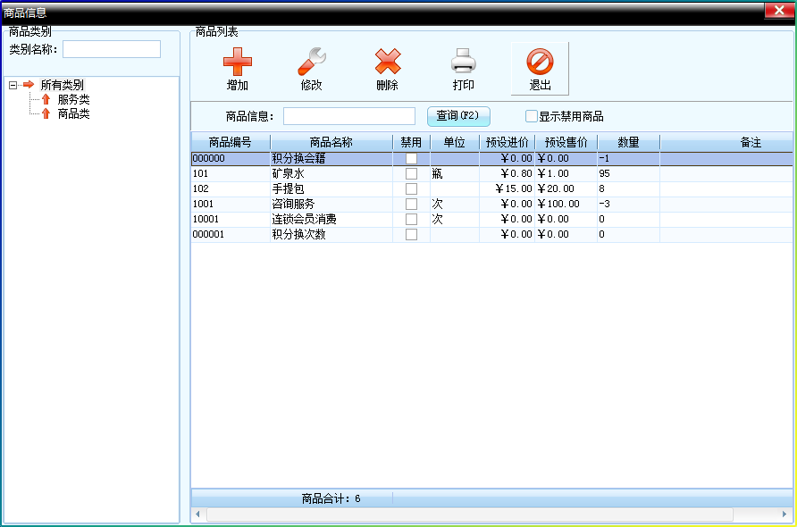 2.點(diǎn)擊“商品設(shè)置”,點(diǎn)擊“商品基本信息”來(lái)增加、修改、刪除、打印等操作