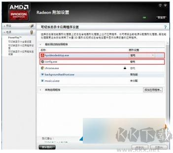 5. 找到"hyvideodesktop.exe"和"config.exe"把右側(cè)的"圖像設(shè)置"改為"省電"狀態(tài),然后點(diǎn)擊"應(yīng)用"即可。
