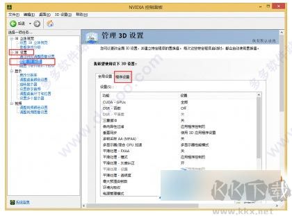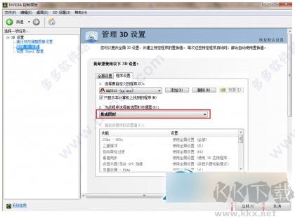 2. 選擇"3D設(shè)置"里的"管理3D設(shè)置",然后點(diǎn)擊框選中的"程序設(shè)置";