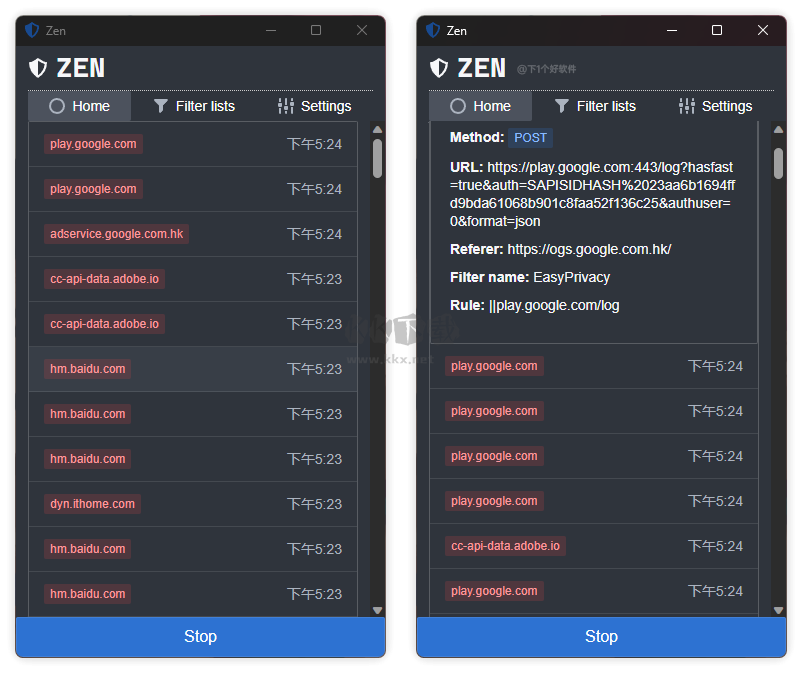 Zen廣告攔截工具正版是一款非常好用的廣告攔截軟件,并且這款軟件內(nèi)還為用戶提供了隱私保護功能,用戶能夠利用這款軟件輕松的攔截所有應(yīng)用程序的HTTP請求,還能及時的阻止惡意軟件的入侵,使用起來非常的便捷,高效,感興趣或者有需要的小伙伴就快來kk網(wǎng)站下載體驗一下吧。
