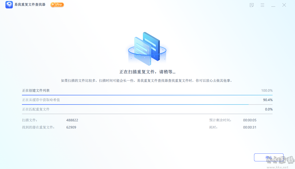 開始進(jìn)行重復(fù)文件掃描,可以在掃描完成前進(jìn)行「停止」操作。