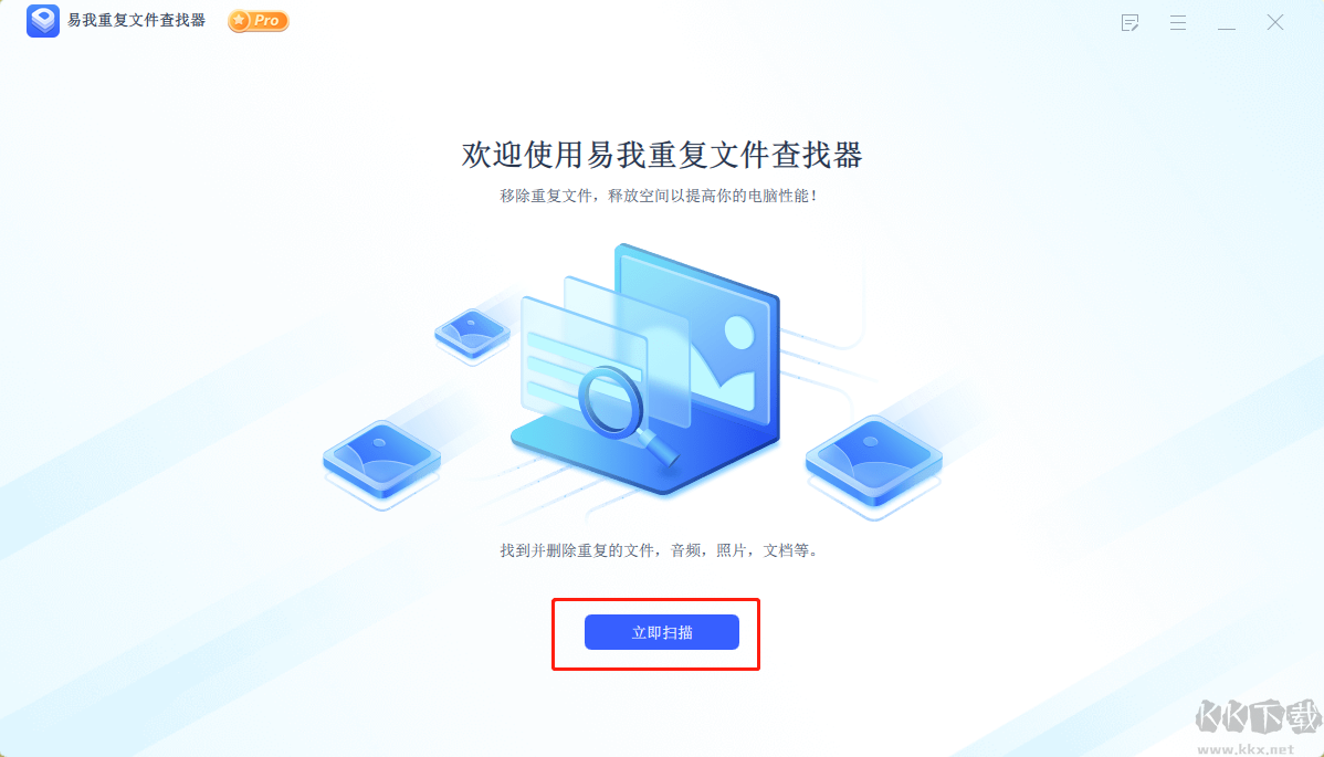 易我重復(fù)文件查找器官網(wǎng)版是一款操作起來非常簡單實(shí)用的重復(fù)文件查找軟件,能夠支持用戶在這里快速的對重復(fù)的文件進(jìn)行清理,使用起來也非常的快速,并且還能支持用戶一鍵或按類別清理重復(fù)的圖片,視頻,音頻和文檔等內(nèi)容,感興趣或者有需要的小伙伴就快來kk網(wǎng)站下載體驗(yàn)一下吧。