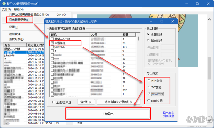 2,可導(dǎo)出私聊記錄,也可導(dǎo)出QQ群聊中的記錄。