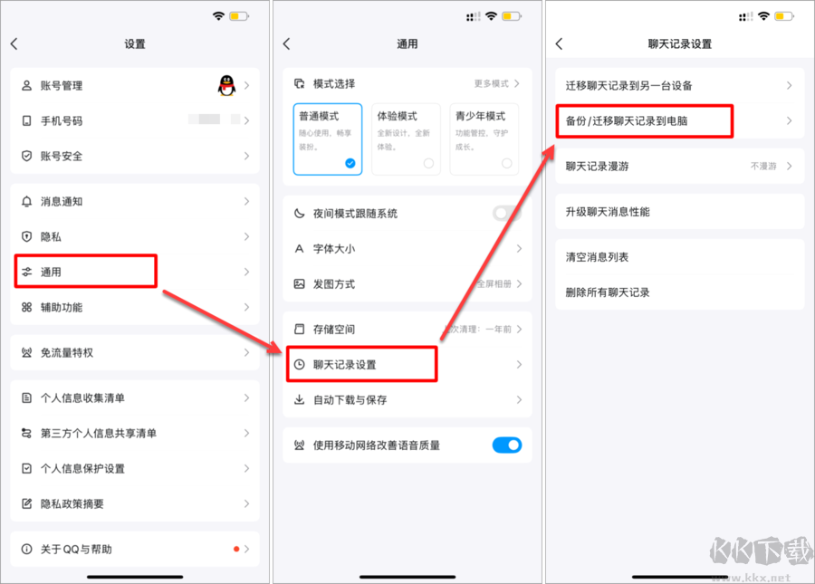 1,如需導(dǎo)出的是蘋果手機(jī)或安卓/鴻蒙手機(jī)中的記錄,需先將手機(jī)與電腦連接相同WIFI,然后按下圖所示,將手機(jī)QQ記錄先遷移到PC版QQ上。