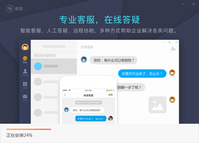 諾言是原來的諾諾助手,這款助手是由諾諾網(wǎng)推出的一款在線客服軟件,它的作用是為航天信息股份有限公司的各類開票軟件,當然對于公司人員來說使用諾言直接可以替代即時通訊軟件,和公司同事進行溝通交流的好幫手!智能客服、人工答疑、遠程協(xié)助,多種方式幫助企業(yè)解決各類問題。