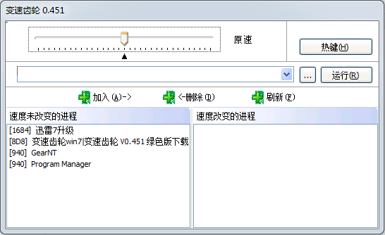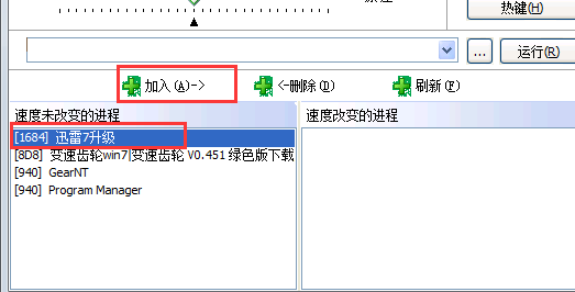 1、在“速度未改變的進(jìn)程”列表框中是變速齒輪沒有對(duì)他變速的進(jìn)程。在這個(gè)列表框中選擇一個(gè)進(jìn)程,點(diǎn)加入按鈕,可以把他加入到“速度改變的進(jìn)程”列表中。