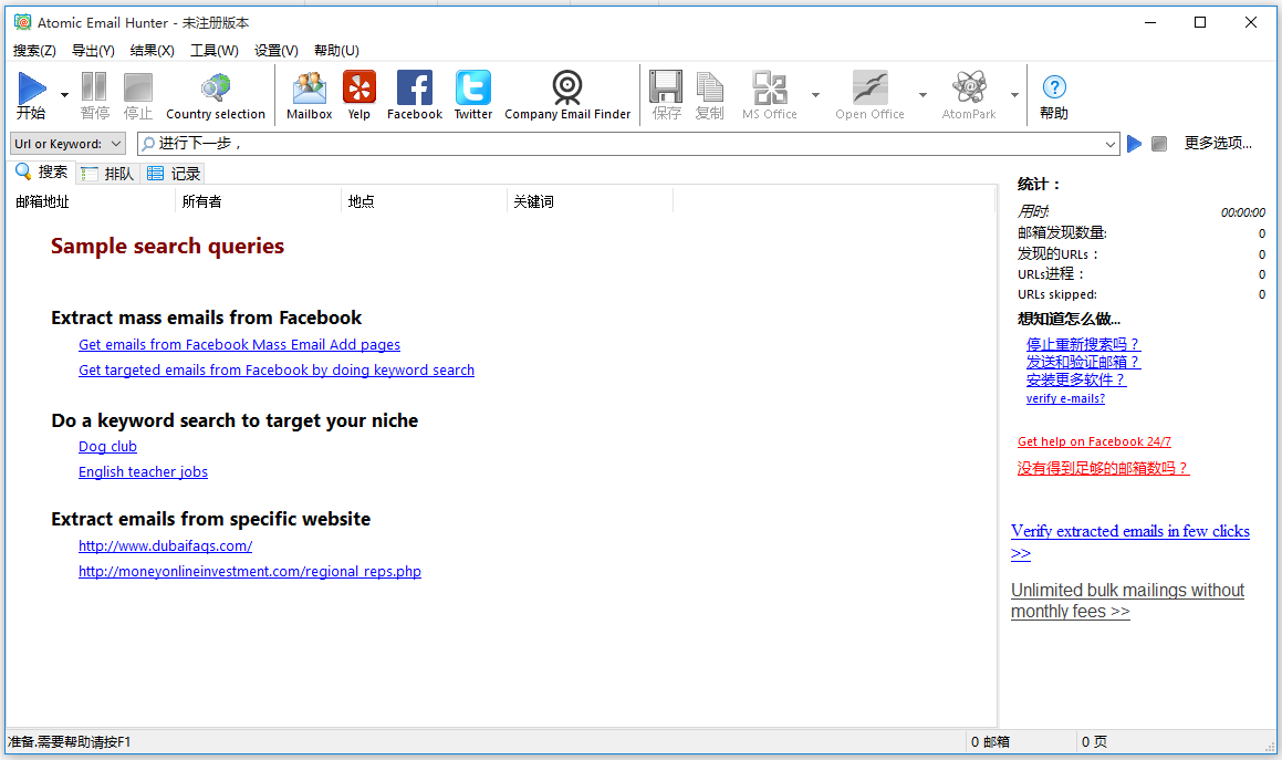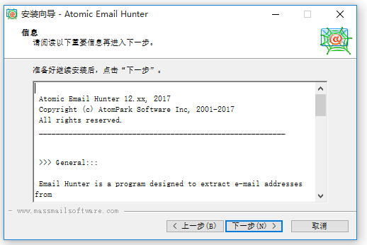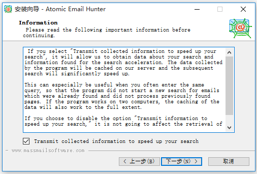 Atomic Email Hunter是一款可以在網(wǎng)頁(yè)中尋找電子郵件地址或用戶名的獵取軟件,搜索速度很快,可以設(shè)定掃描的深度和路徑,支持多頁(yè)操作,適合營(yíng)銷工作者使用。軟件可以搜索匹配指定的關(guān)鍵字的網(wǎng)站,并從這些網(wǎng)站中提取電子郵件地址,從需要登錄和密碼的頁(yè)面中檢索地址,簡(jiǎn)單方便。Atomic Email Hunter安裝說明