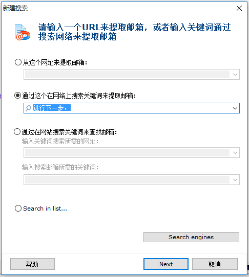 電子郵件地址將從這種網(wǎng)頁(yè)頁(yè)面中提取。檢索能夠 被限定到特殊的國(guó)家。