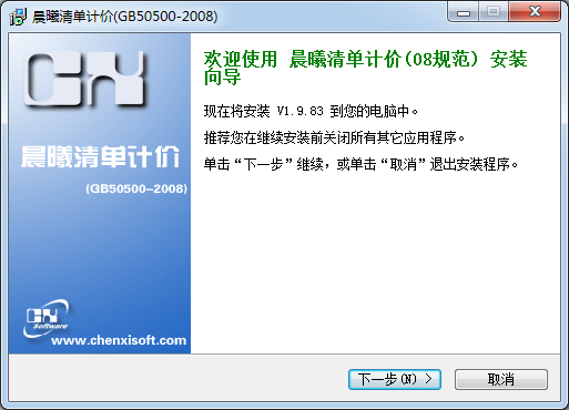 1.到本站下載安裝晨曦清單計(jì)價,打開安裝程序,點(diǎn)擊下一步繼續(xù)安裝;