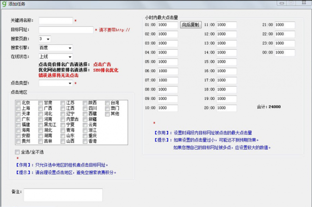 隨自己點(diǎn)擊意愿和預(yù)期,設(shè)置日最大點(diǎn)擊量和每一個(gè)小時(shí)內(nèi)的最大點(diǎn)擊量;