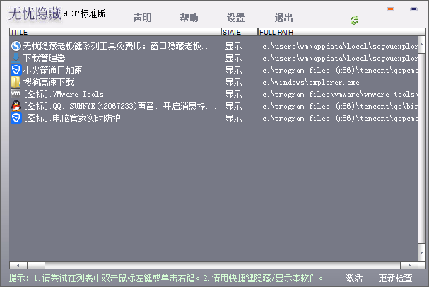 使用鼠標(biāo)或鍵盤快捷鍵瞬間隱藏指定窗口或通知區(qū)圖標(biāo)。