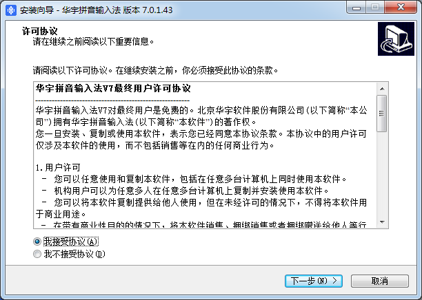 華宇拼音輸入法V7對(duì)最終用戶是免費(fèi)的。北京華宇軟件股份有限公司(以下簡稱“本公司")擁有華宇拼音輸入法(以下簡稱“本軟件”)的著作權(quán)。